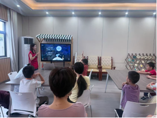 活动开始,教师用生动的课件,用温柔又富有节奏感的语调讲述《月亮的味道》。从海龟努力踮脚够月亮,到长颈鹿、斑马、狮子依次加入“叠罗汉”,教师通过模仿不同动物的叫声、夸张的肢体动作,将故事里的童趣与坚持展现得淋漓尽致。孩子们听得入迷,不时跟着情节发出“哇”的惊叹,还主动举手猜测“下一个动物会是谁”,现场互动氛围热烈。